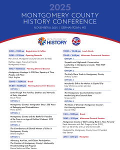 The Montgomery County History Conference, held on November 8 at Montgomery College’s Germantown Campus in the Bioscience Education Center, provides a diverse range of opportunities for participants to engage with local history. The conference features a keynote address, ten breakouts, a boxed lunch, a closing discussion panel, and a happy hour reception.